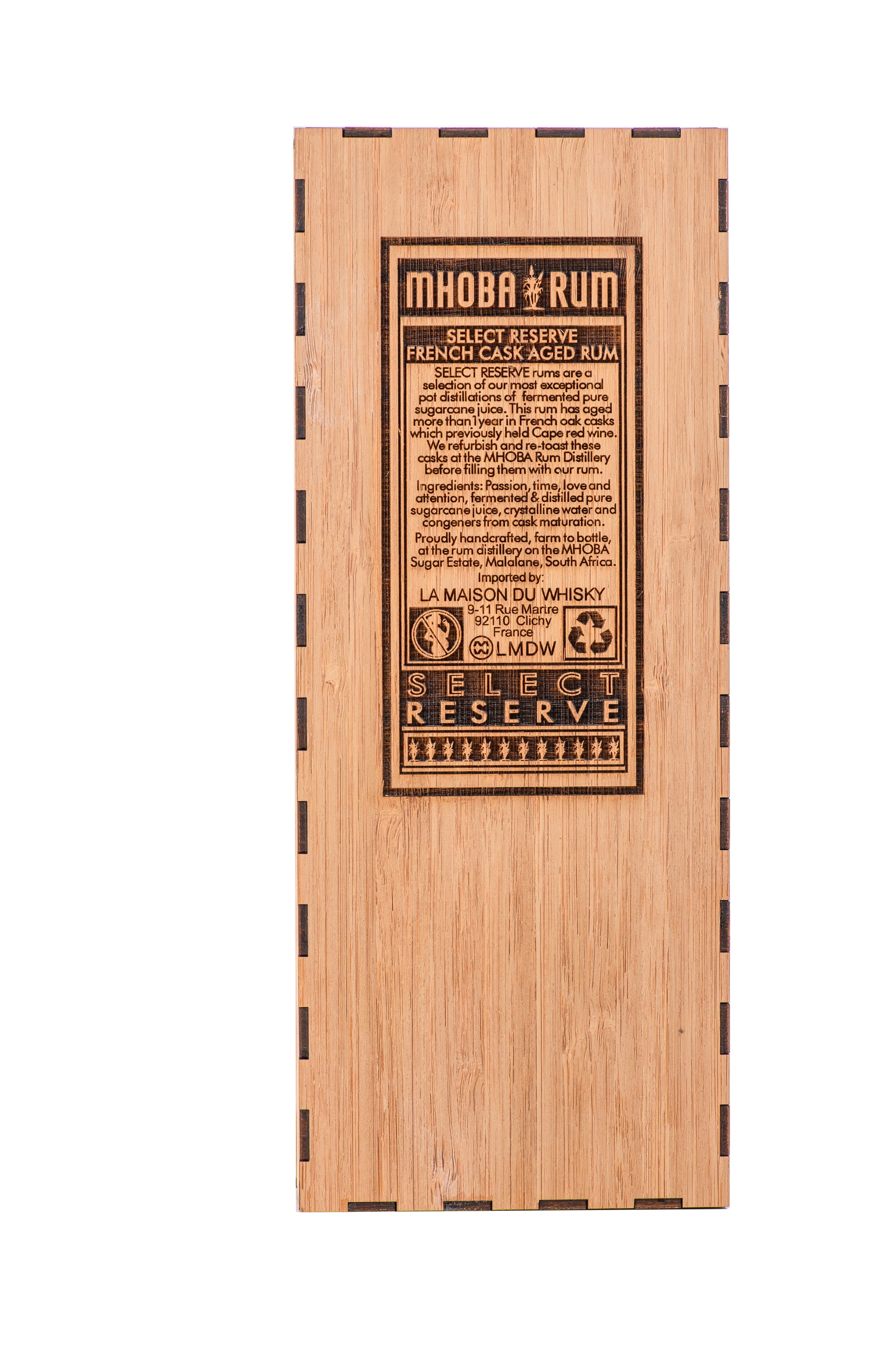 MHOBA Select Reserve French Cask 750ml 65% ABV with Bamboo Box